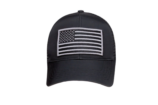 Black Waterproof Trucker Hat Snapback with USA Flag Embroidery