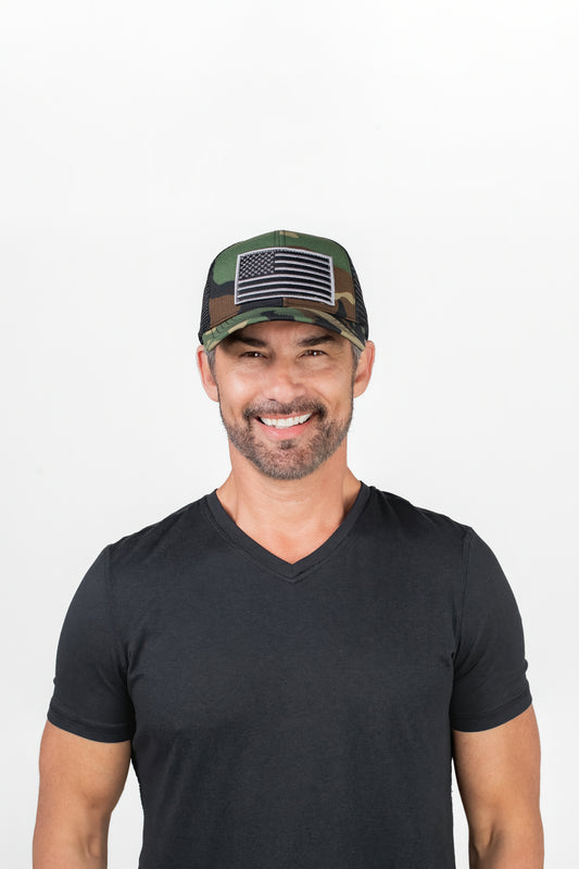 Black Waterproof Trucker Hat Snapback with USA Flag Embroidery