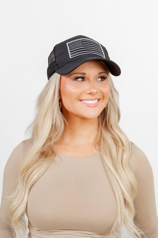 Black Waterproof Trucker Hat Snapback with USA Flag Embroidery