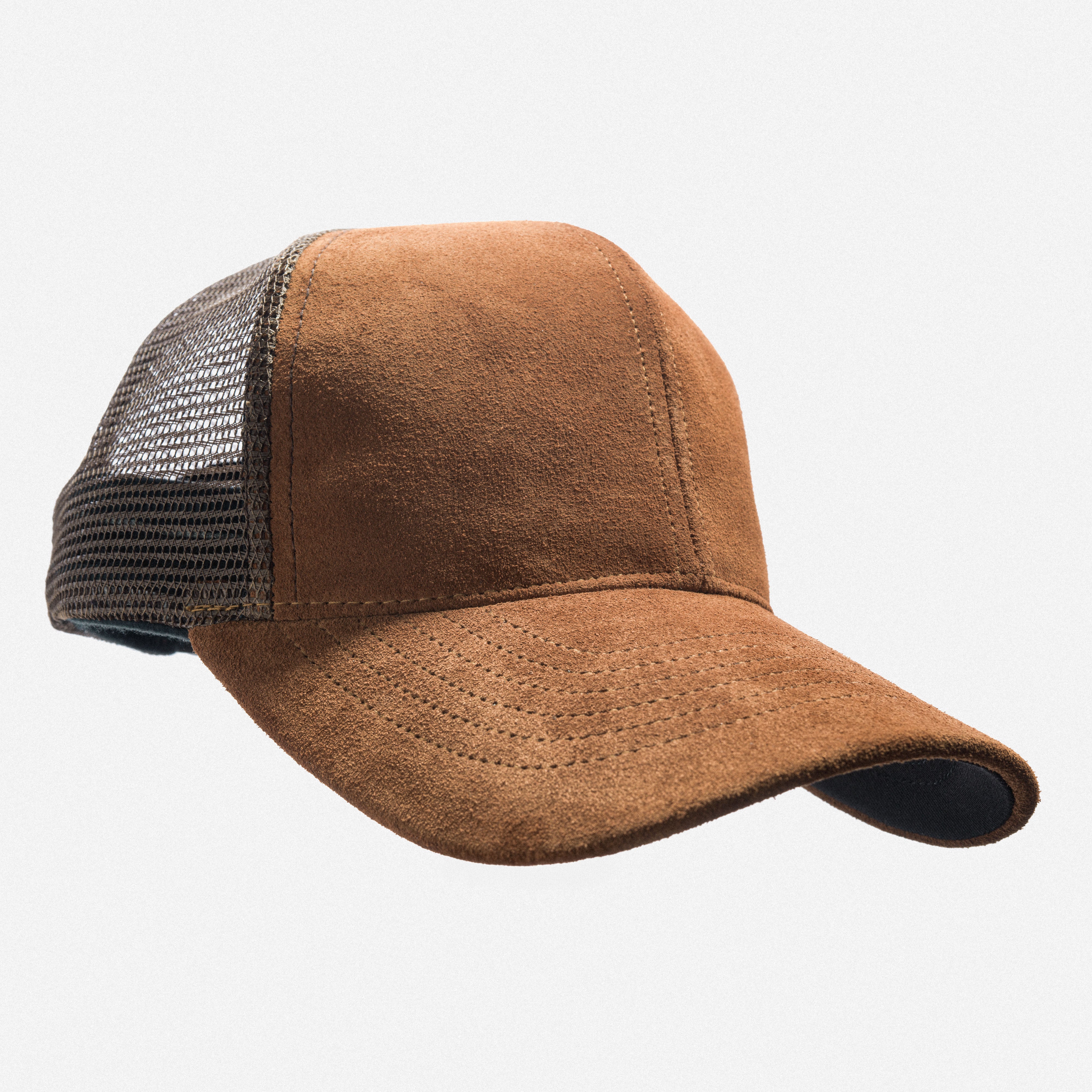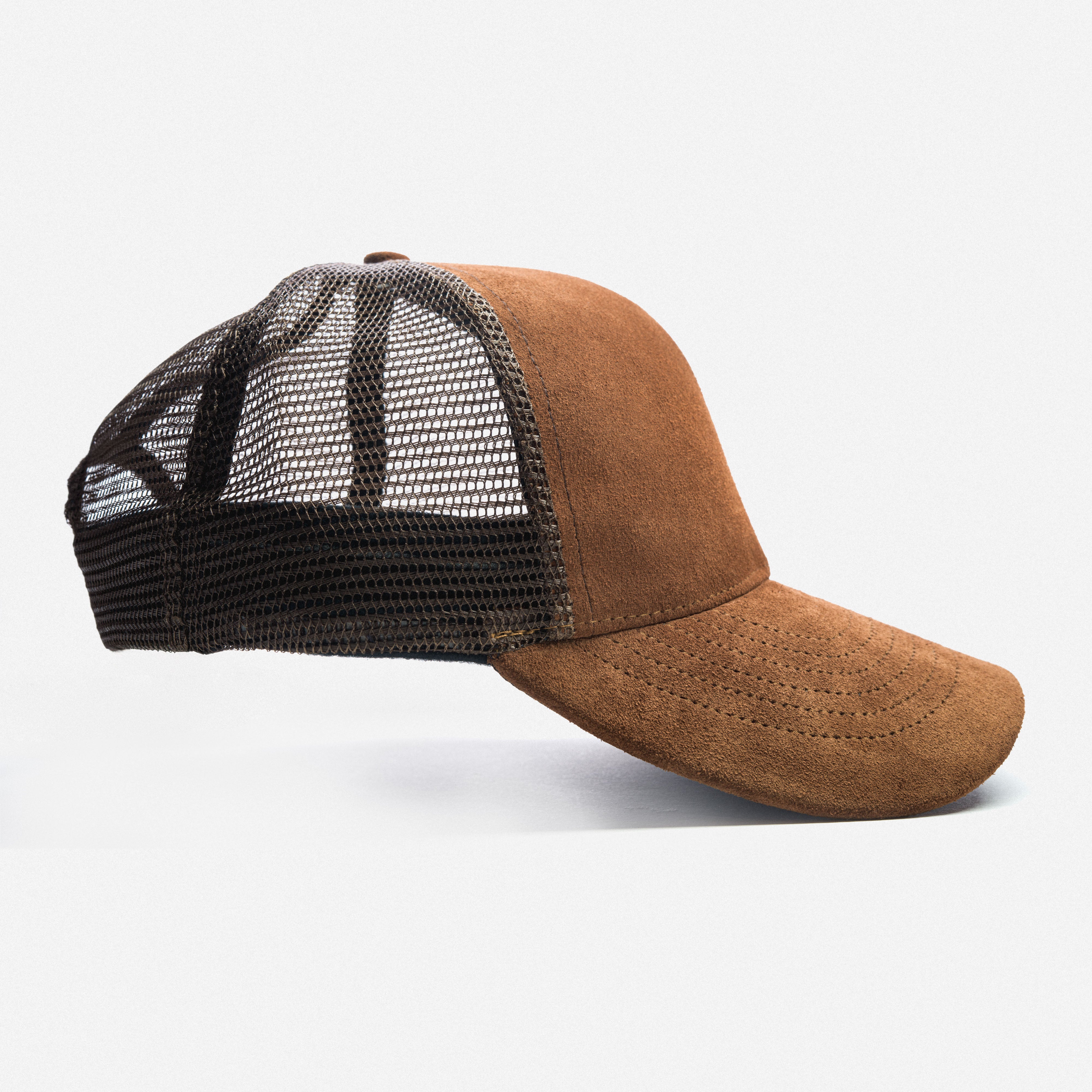 Café Brown Italian Suede Trucker Hat, Snapback, Made in USA